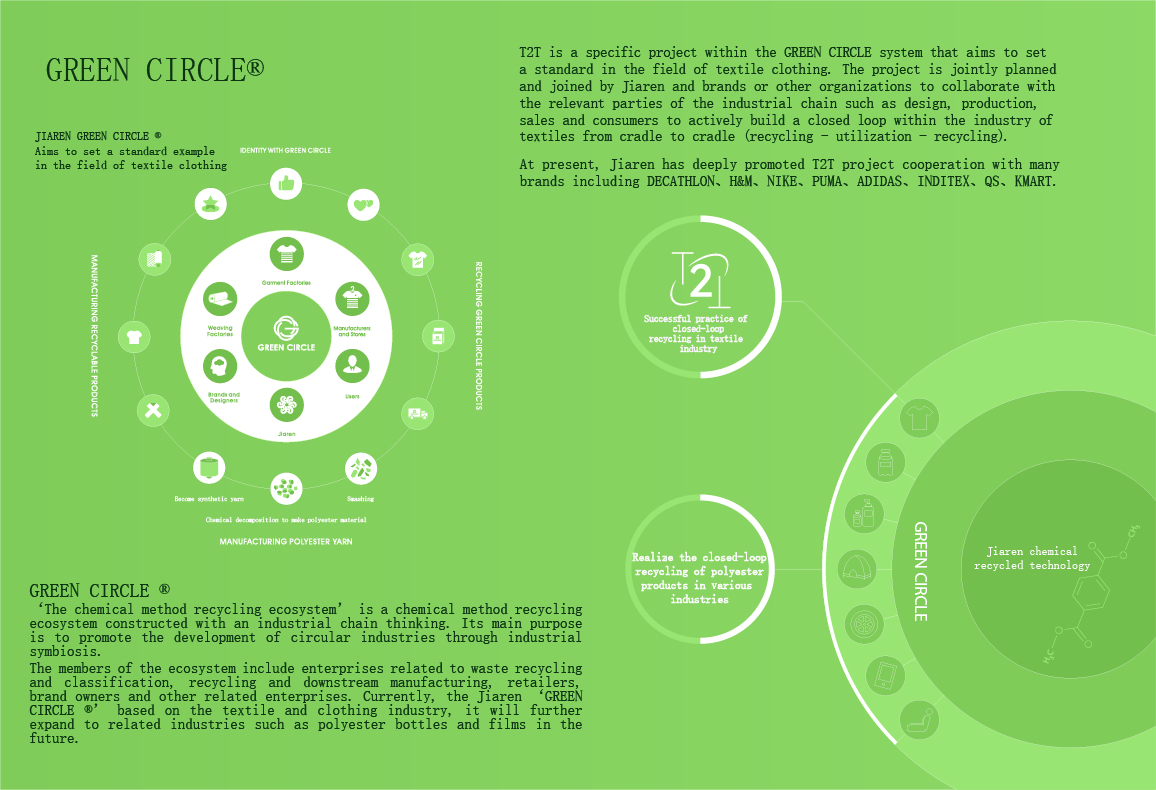 Through the use of the world's most advanced GREEN CIRCLE recycling system, to achieve a closed permanent cycle from clothes to clothes
